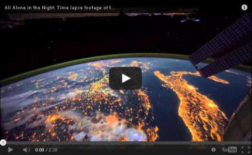 A time-lapse taken from the front of the International Space Station as it orbits our planet at night.